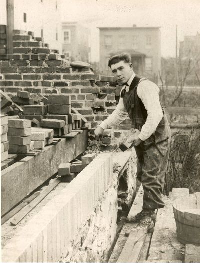 Frank Mercede was a young man, full of the best intentions, master of his trade, but ignorant of the new language. He couldn't adjust to the American customs, nor even belong to a union without first going through a hard and painful novitiate, gratuitous though it was all in a professional sense, Nevertheless, he did not lose heart. He lived with his relatives, but he had to pay $7 a week for board and keep, and he didn't have it. One day his aunt suggested that he get himself a job in a shirt factory. It was a strange suggestion to make to a bricklayer, yet Frank, intent on getting work, presented himself at the factory. He was hired though he knew nothing about that kind of work at all. Urged on by necessity and armed with a driving desire to get started at something, he learned to operate a sewing machine and earned $5 per week, just $2 short of his minimum living expenses.